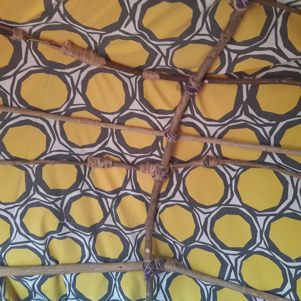 My contribution to the residency included creating an indoor Bender, for my Granddaughters to play in, made using natural materials from my garden and fabrics from my home during lock down. I also made a short film tracing the building process and an illustrated short story Bender Tales.